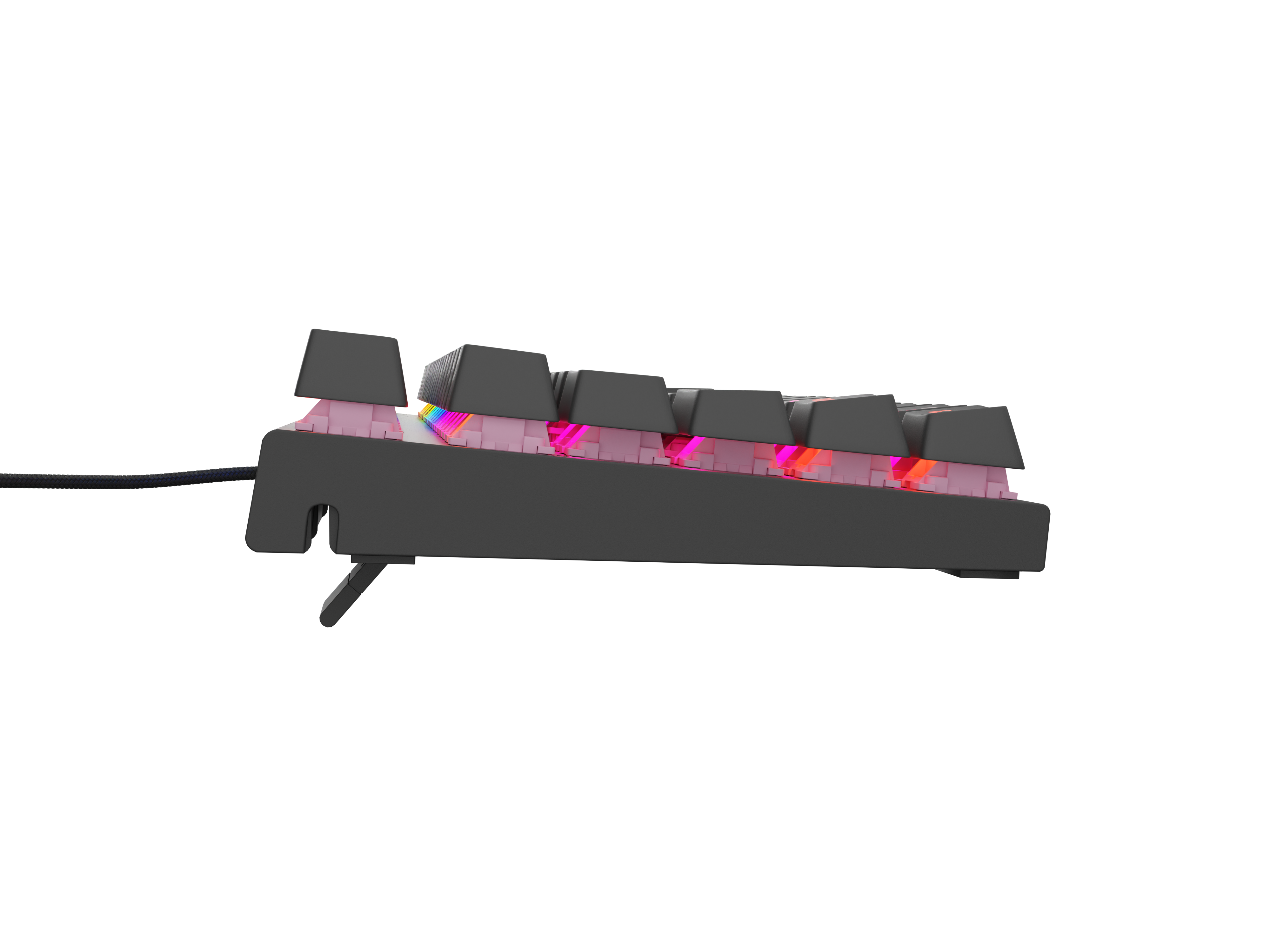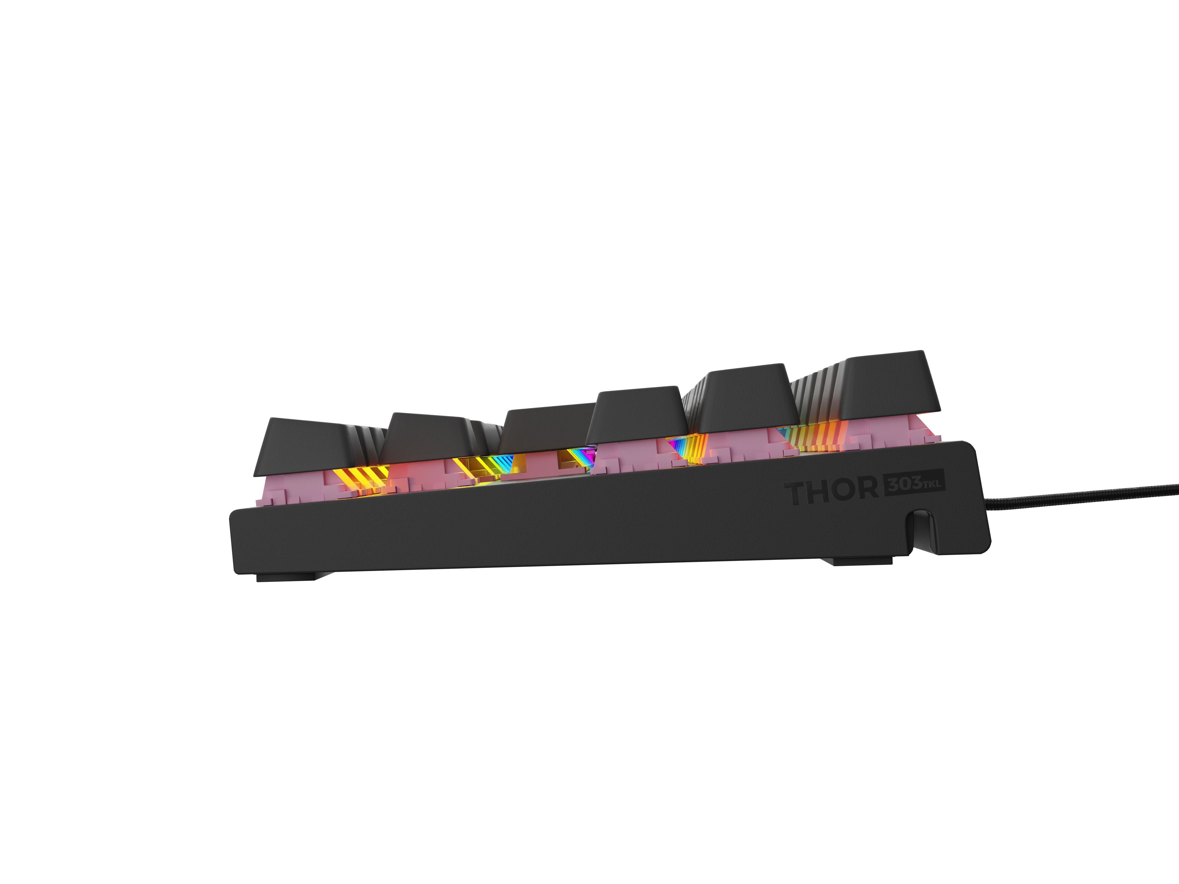 Schätzt du die Qualitäten mechanischer Tastaturen, bevorzugst aber eine leisere Tastenbetätigung? Dank der Verwendung von Outemu Peach Silent konnten wir ein Modell entwickeln, das 30 % leiser ist als herkömmliche Outemu Brown-Schalter. Nächtliche Gaming-Sessions? Mit der Thor 303