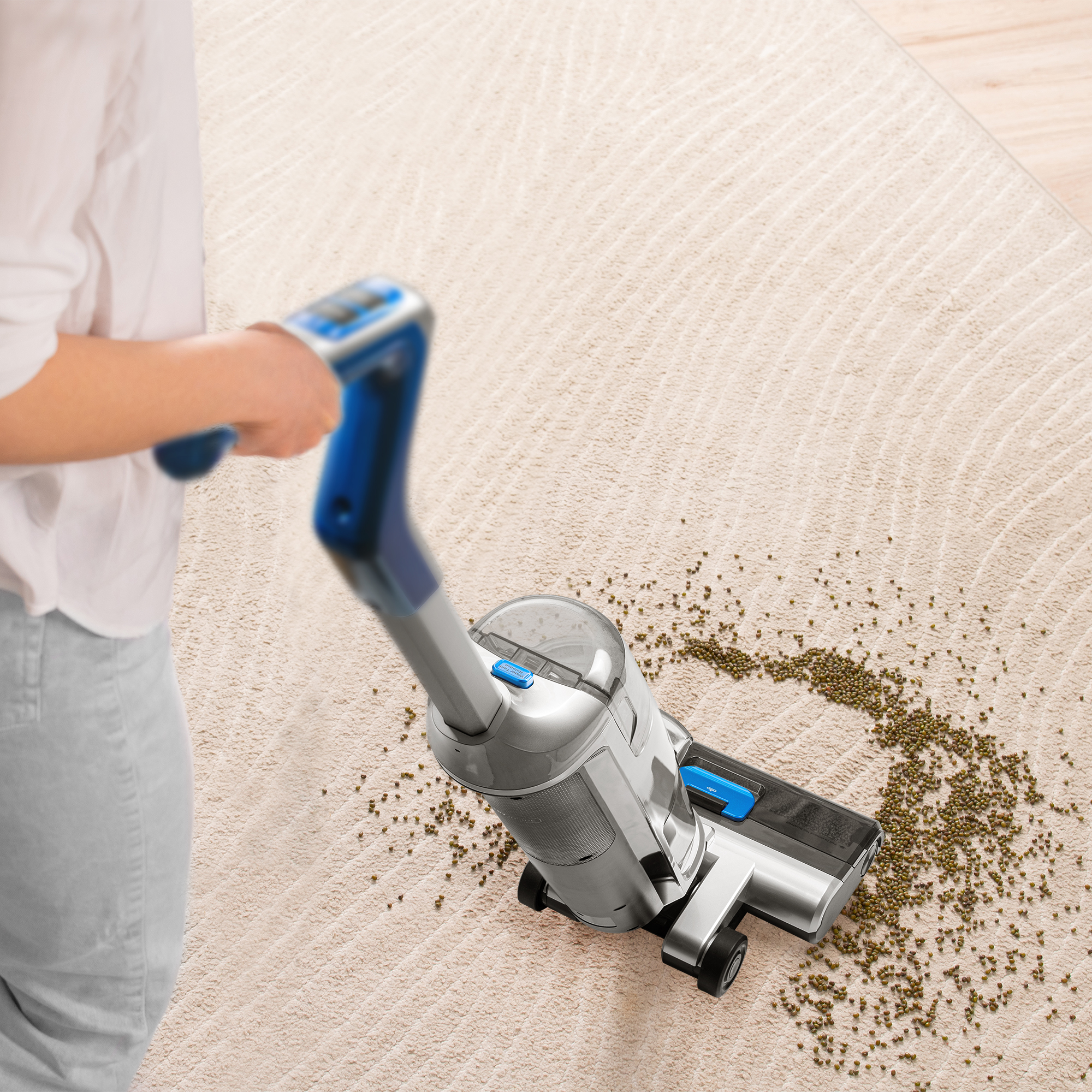 Das INVICTUS WD7 Set vereint kraftvolle Reinigung und flexible Handhabung in einem kompakten Design. Mit dem integrierten 180 W Hochleistungs-BLDC-Motor und bis zu 2.000 U/Min wird selbst hartnäckiger Schmutz mühelos beseitigt – ob Flüssigkeiten wie Kaffee und Eier oder trockene Verschmutzungen wie Müsli. Das Gerät ist ideal für die Reinigung von Hartböden und Teppichen und spart durch gleichzeitiges Saugen und Wischen wertvolle Zeit.