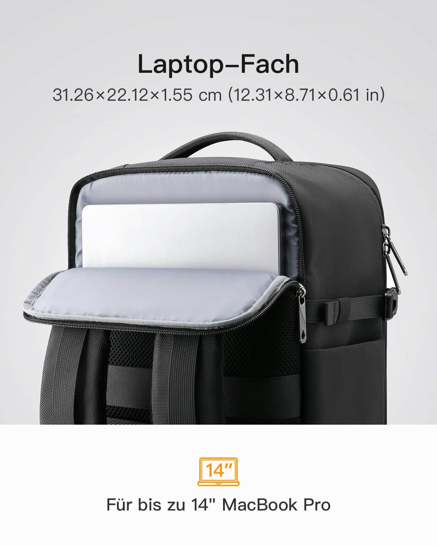 Besonderheiten: erweiterbares Volumen, gepolstertes Laptopfach, mehrere Organisationsfächer, komfortable Polsterung