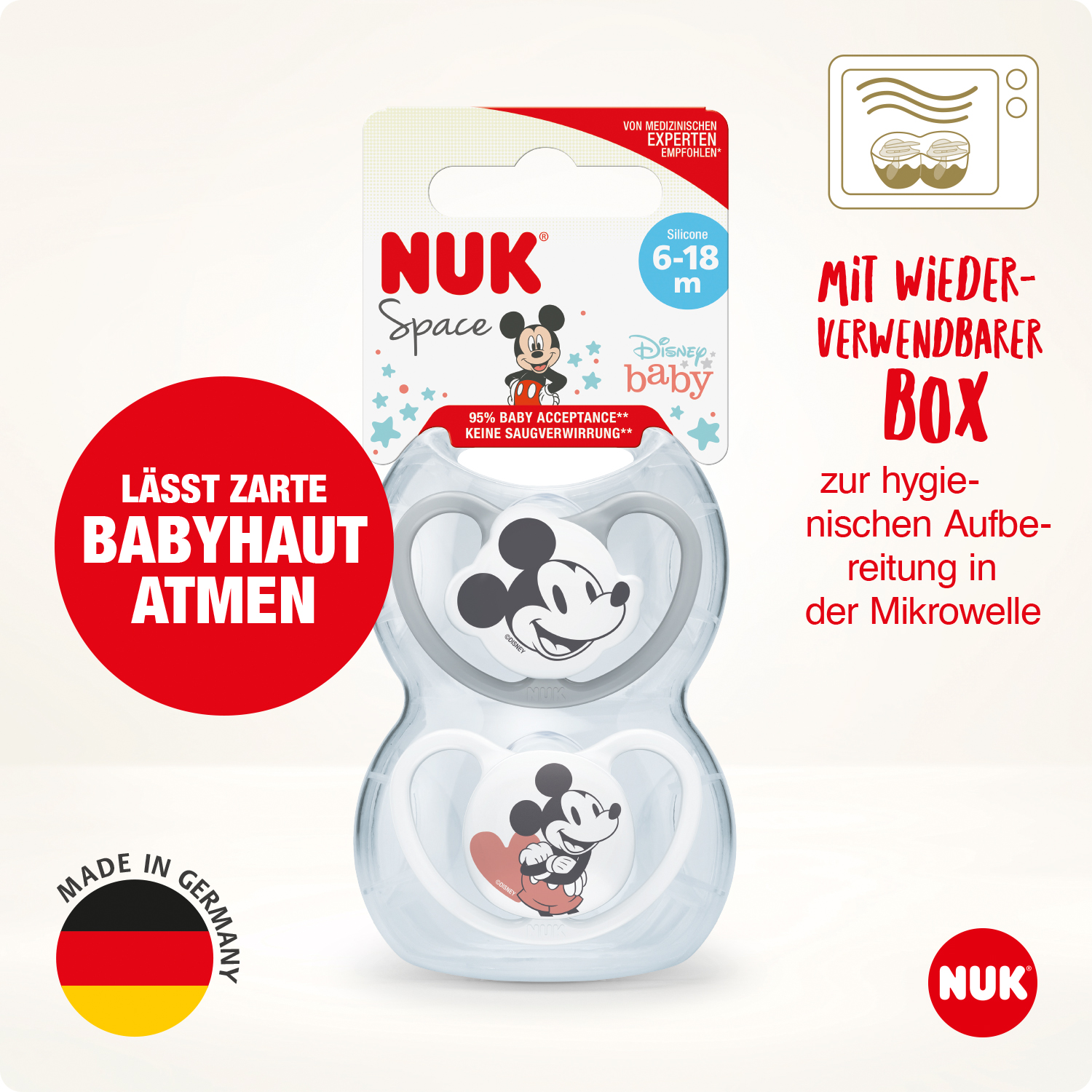 NUK Schnuller Silikon Gr.2 Disney Mickey Space 2Stk grau/wss