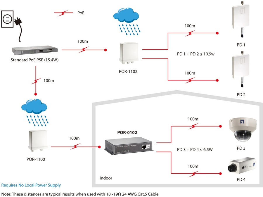 LevelOne POR-0102 2-Port PoE Repeater - Repeater
