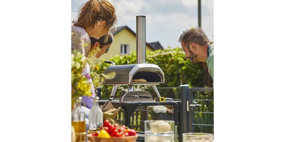 Für noch mehr Komfort kann der Karu 12 mit dem Ooni-Gasbrenner ausgestattet werden, der separat erhältlich ist. Diese Erweiterung ermöglicht eine präzise Temperaturregelung und erleichtert die Handhabung – ideal für alle, die flexibel zwischen traditionellem Holzfeuer und moderner Gasbefeuerung wechseln möchten. Das Gehäuse aus Edelstahl ist witterungsbeständig und mit Keramikfasern isoliert, während der integrierte Schornstein und das Thermometer eine optimale Kontrolle beim Backen bieten.
