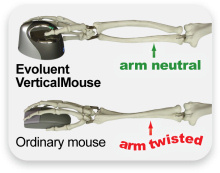 Die patentierte Form unterstützt die Hand in einer aufrechten neutralen Haltung, die Unterarm Verdrehen der Regel vermeidet. Viele Benutzer, einschließlich Ärzte, Ergonomen und Physiotherapeuten, sagte der Evoluent Vertical bietet höchsten Komfort und erleichtert auch ihre Schmerzen am Handgelenk.