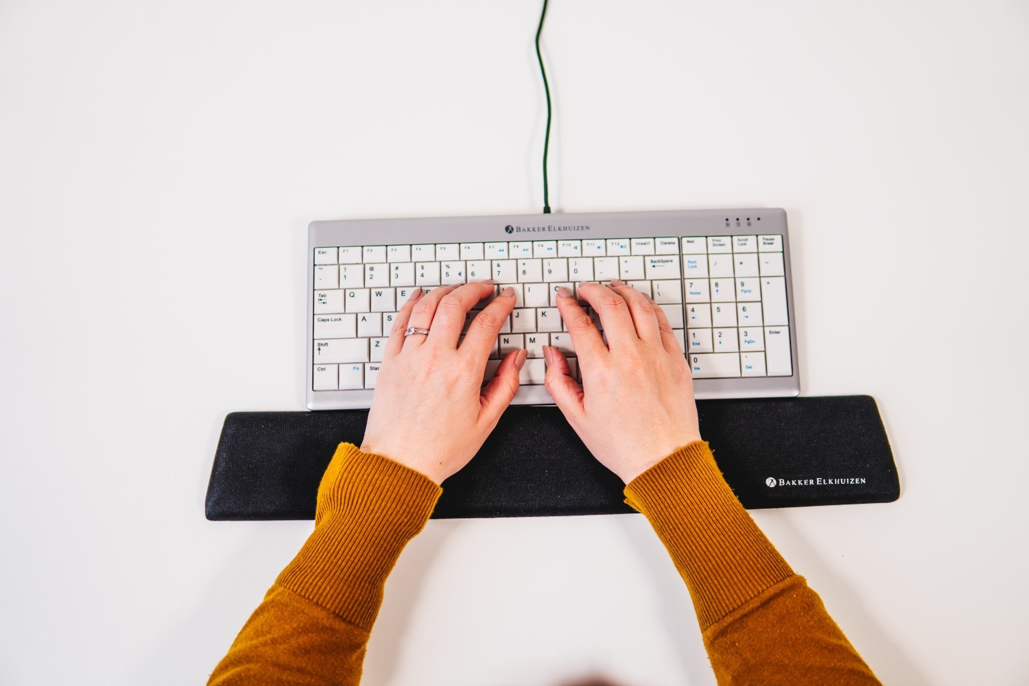 Die Bakker Trapezium Wrist Rest Standard bietet eine ergonomische Unterstützung für die Tastaturarbeit, wodurch das Handgelenk in einer natürlichen Linie mit der Hand gehalten und Belastungen reduziert werden.