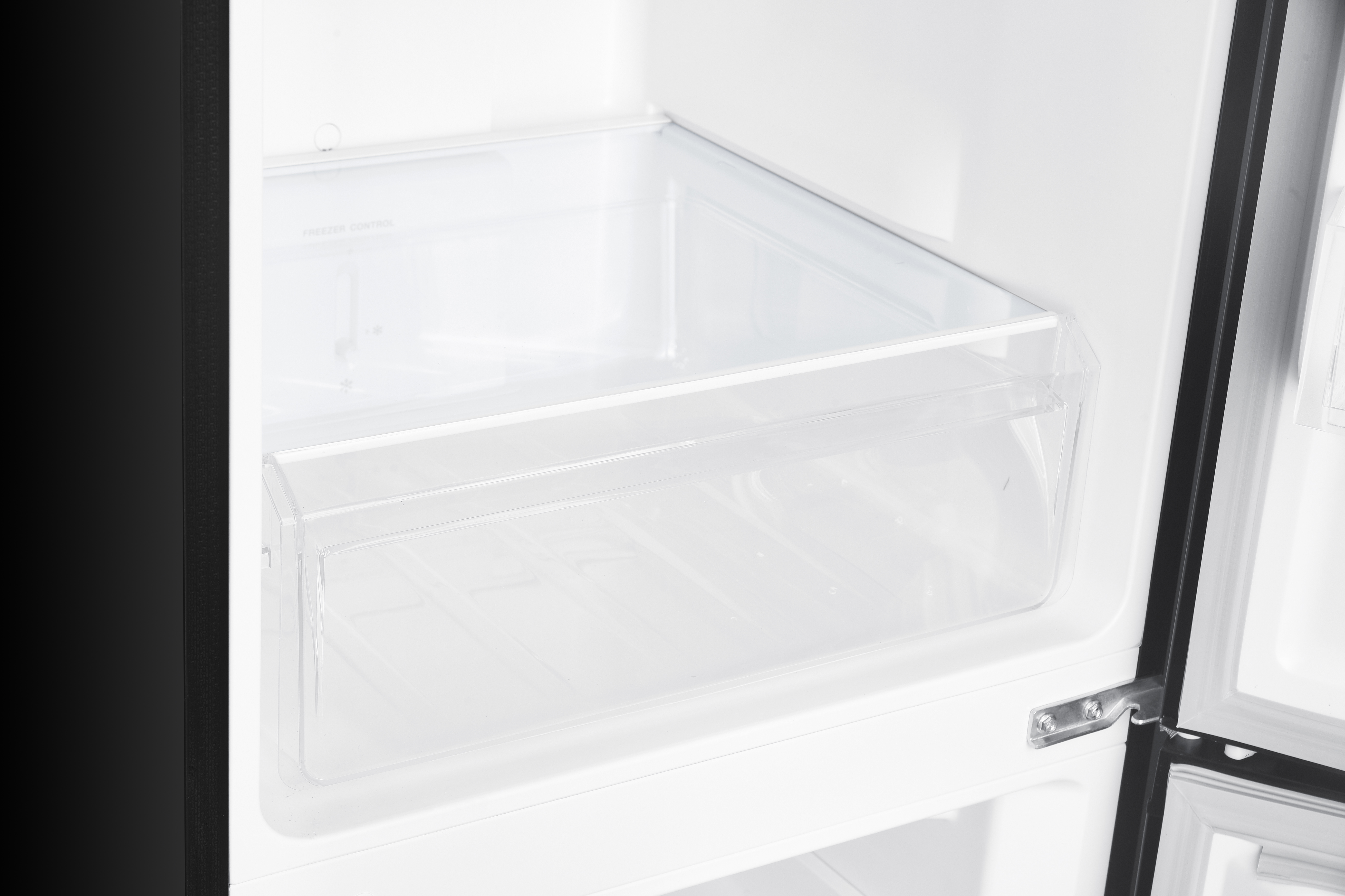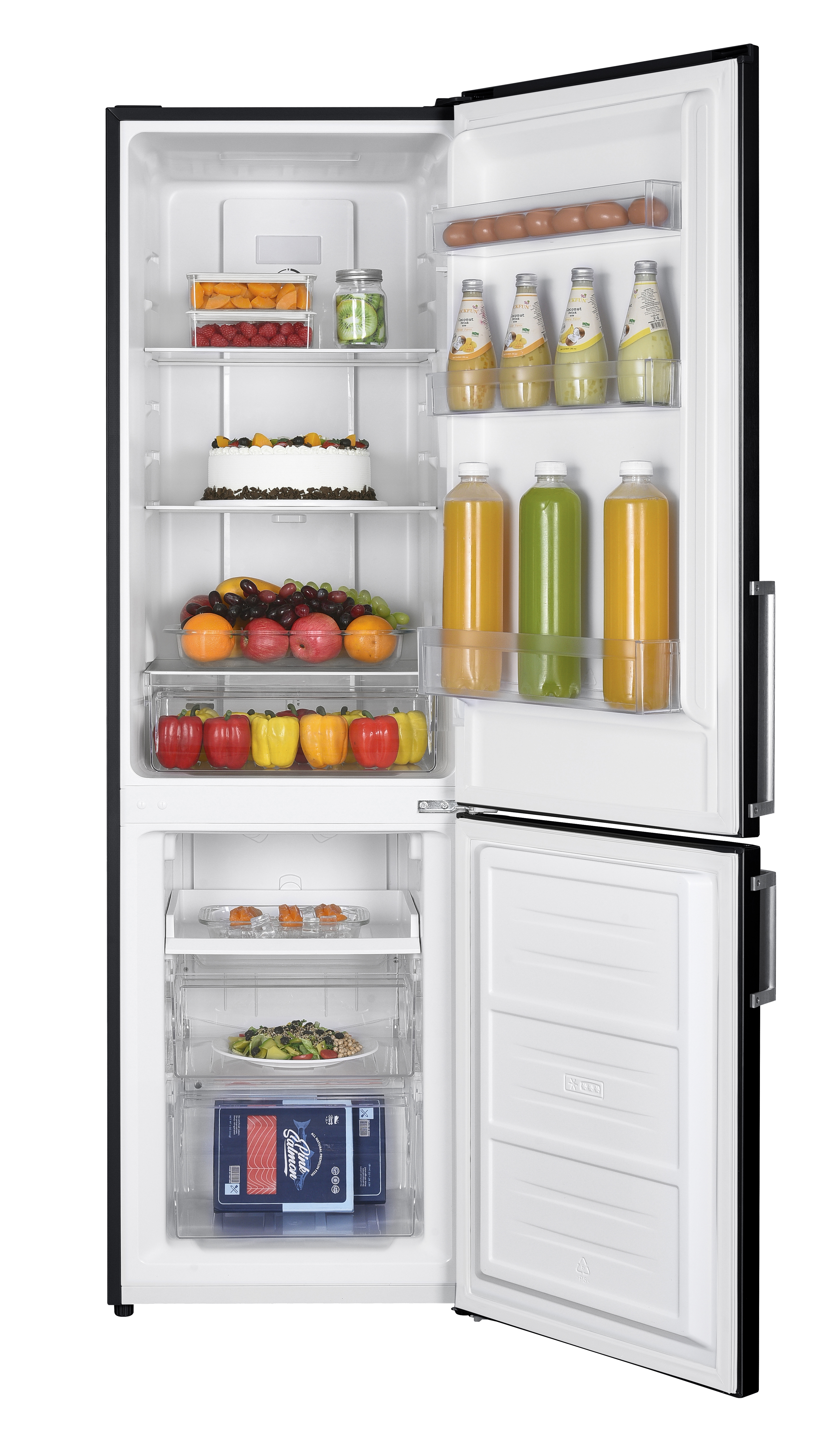 Das digitale Steuerungssystem mit LED-Display sorgt für eine präzise Temperaturregelung, während die verstellbaren Ablagen und Türfächer für flexible Aufbewahrungsmöglichkeiten sorgen.