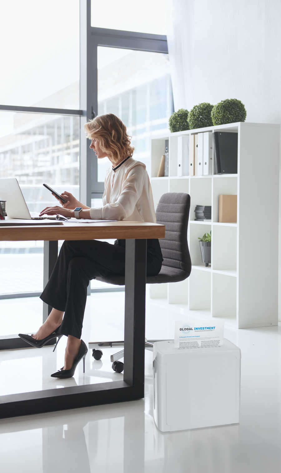 Mit einer Kapazität von bis zu 6 Blatt (80 g/m²) pro Durchgang eignet sich das Gerät ideal für den gelegentlichen Einsatz, wodurch kleinere Papiermengen effizient verarbeitet werden können. Die SuperSilent-Technologie sorgt für eine besonders leise Arbeitsweise, wodurch ein angenehmes und störungsfreies Arbeiten ermöglicht wird.
