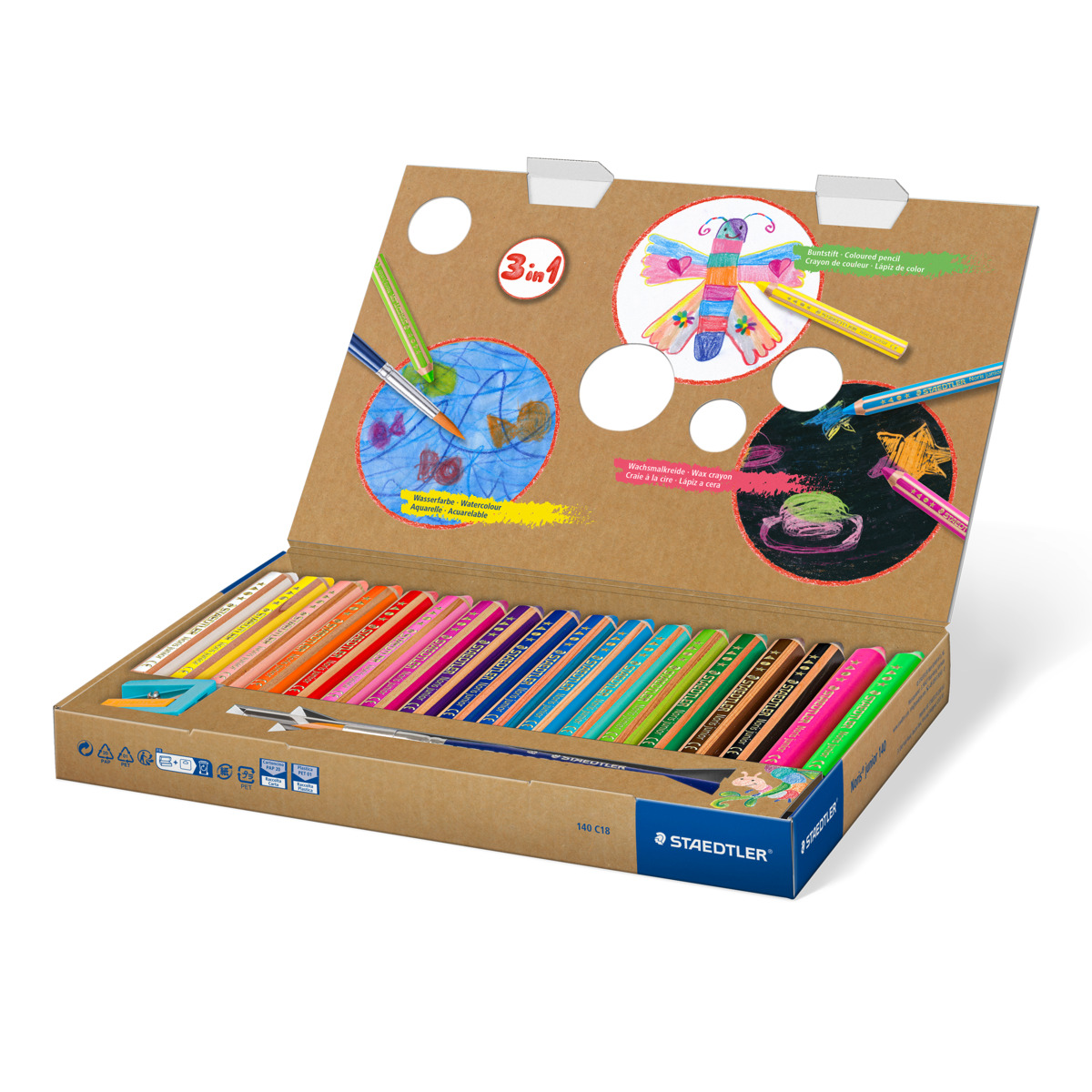 - 3 in 1: Bunt-, Wachsmal- und Aquarellstift in einem