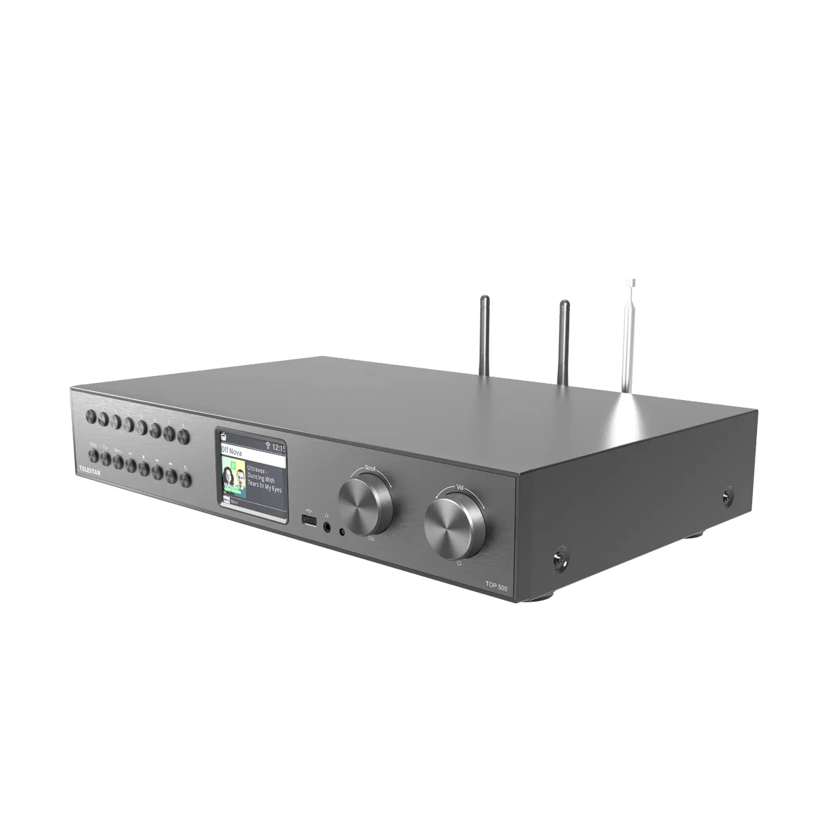 Das TELESTAR TOP 500 ist ein vielseitiger HiFi-Tuner im edlen Metallgehäuse mit 43 cm Rack-Breite, der DAB+, UKW und Internetradio vereint. Die Musikwiedergabe erfolgt über