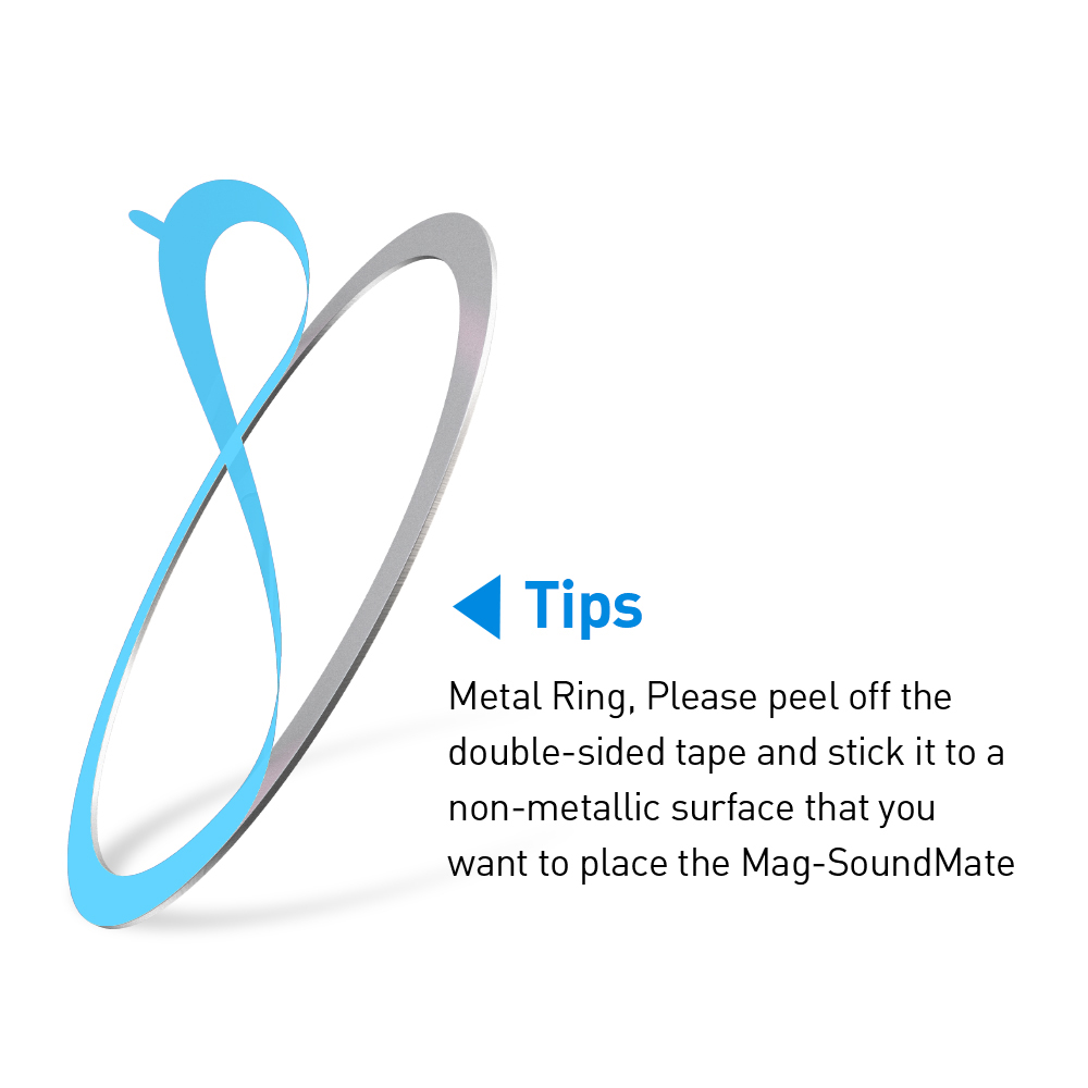 Im Lieferumfang befinden sich zwei Metallringe. Der Metallring wird hauptsächlich zur Befestigung des Mag-SoundMate auf einigen nichtmetallischen Oberflächen verwendet. Um den Einsatz in der Umgebung vielfältiger zu gestalten, haben Verbraucher auch mehr Möglichkeiten, ihn zu verwenden.
