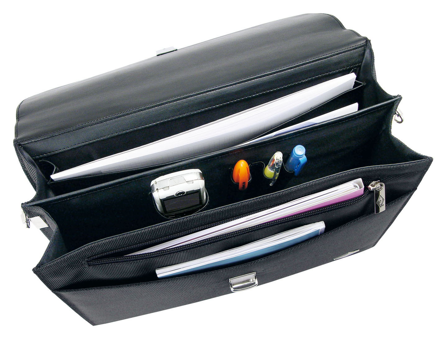 Die Tasche ist abschließbar und bietet dadurch zusätzlichen Schutz für vertrauliche Inhalte. Dank des stabilen Tragegriffs sowie des abnehmbaren, verstellbaren Schultergurts lässt sich die Aktentasche flexibel und komfortabel transportieren.