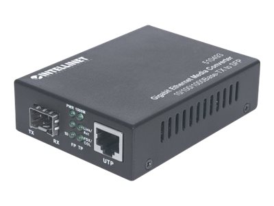 Intellinet Gigabit Ethernet auf SFP-Medienkonverter, 10/100/1000Base-TX auf SFP-Slot, leer - Medienkonverter - GigE - 10Base-T, 100Base-TX, 1000Base-T - RJ-45 / SFP (mini-GBIC)