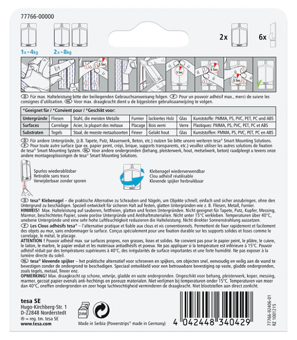 Tesa 77766-00000 - Innenraum - Universalhaken - Weiß - Klebestreifen - 4 kg - Putz