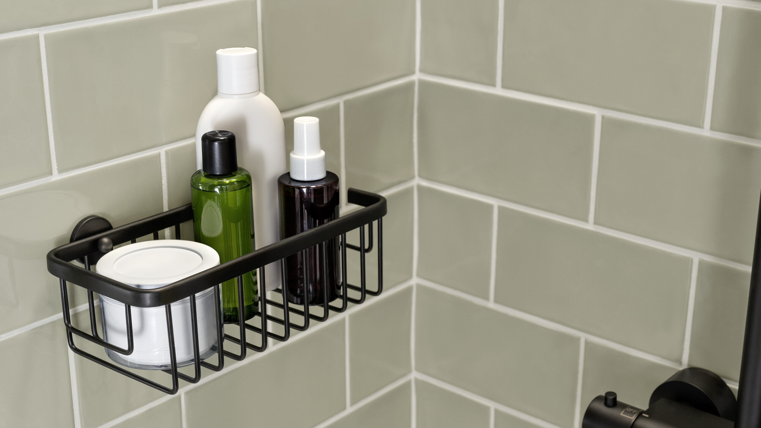 tesa MOON BLACK Duschkorb matt für Dusche und Badewanne