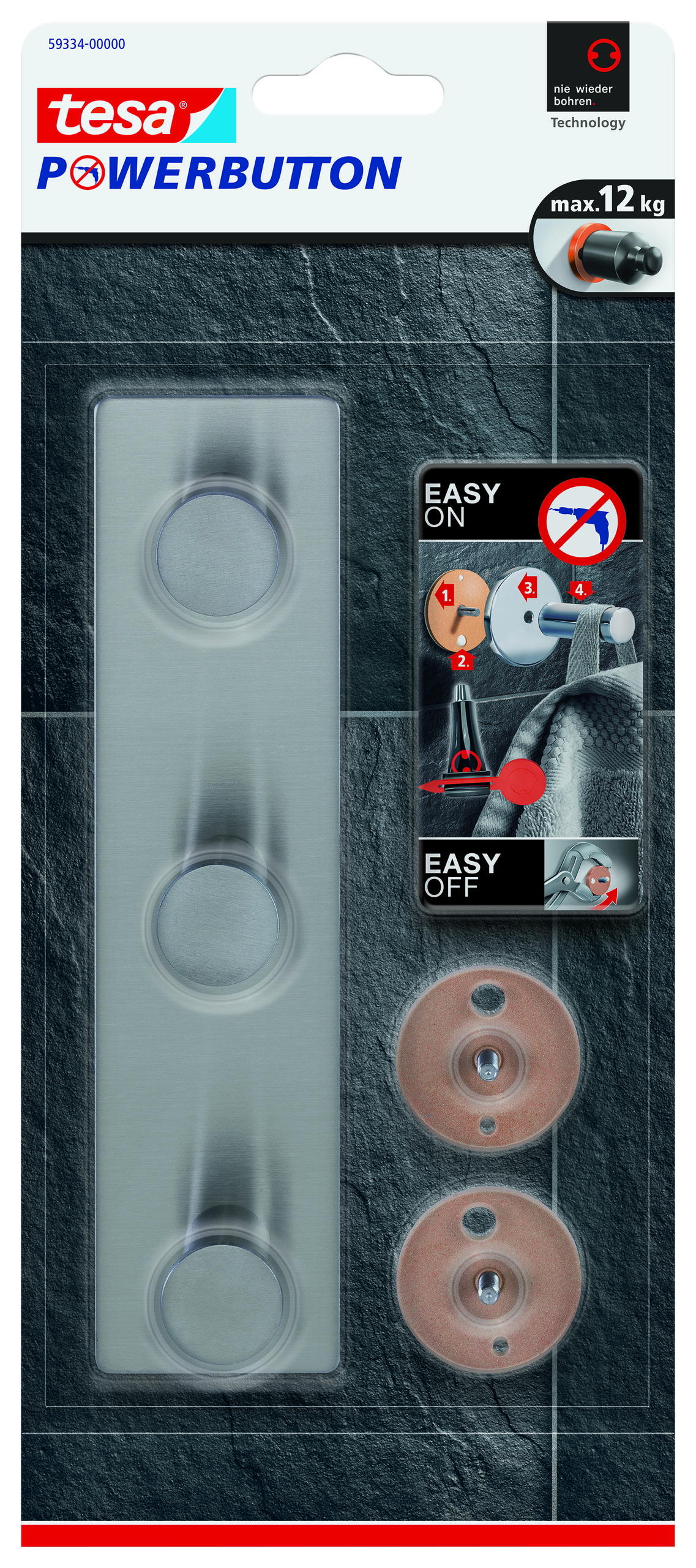 tesa Powerbutton Classic Hakenleiste edelstahl